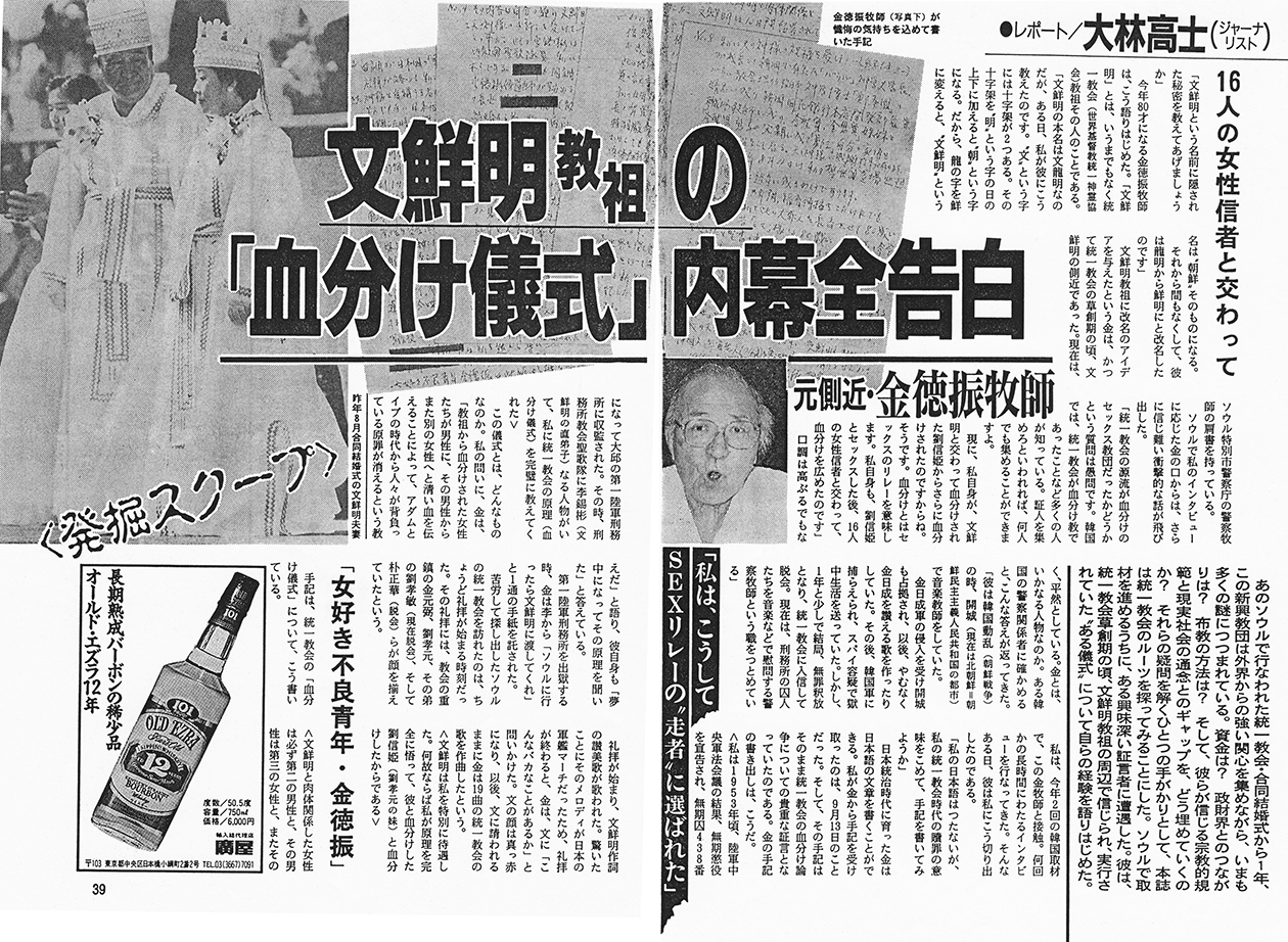 吐き気がするほどの邪悪。統一教会が真のお父様こと文鮮明の性欲を満たすためのセックス教団だったというのは過去にも何度か報道されている話だが……。こんなのとか。qr.paps.jp