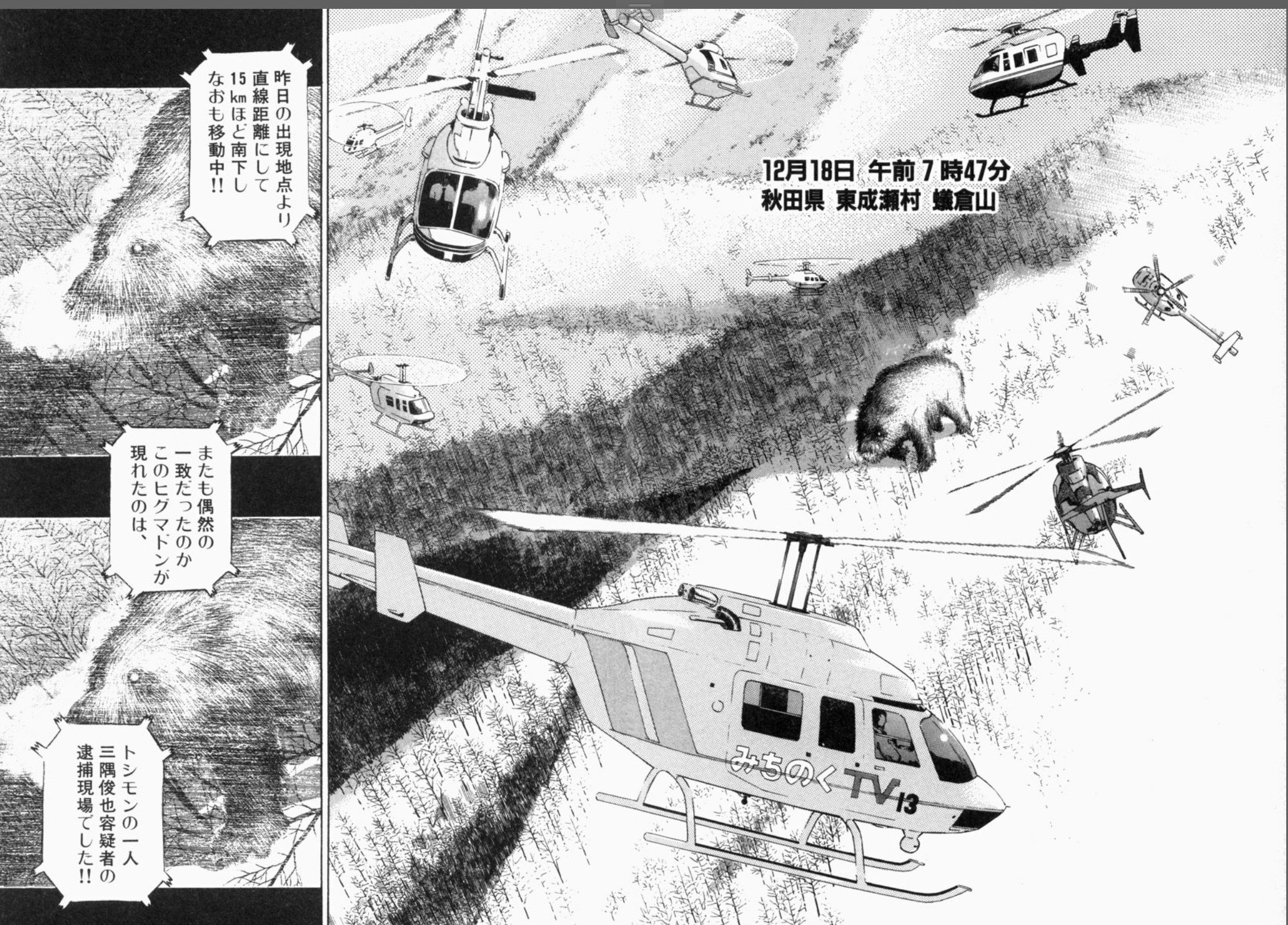 秋田県で「クマ vs 自衛隊」って。。完全に「ザ・ワールド・イズ・マイン」のヒグマドンの世界線になってきた。 https://pbs.twimg.com/media/G4Lz6BSWQAASBzG?format=jpg&name=4096x4096